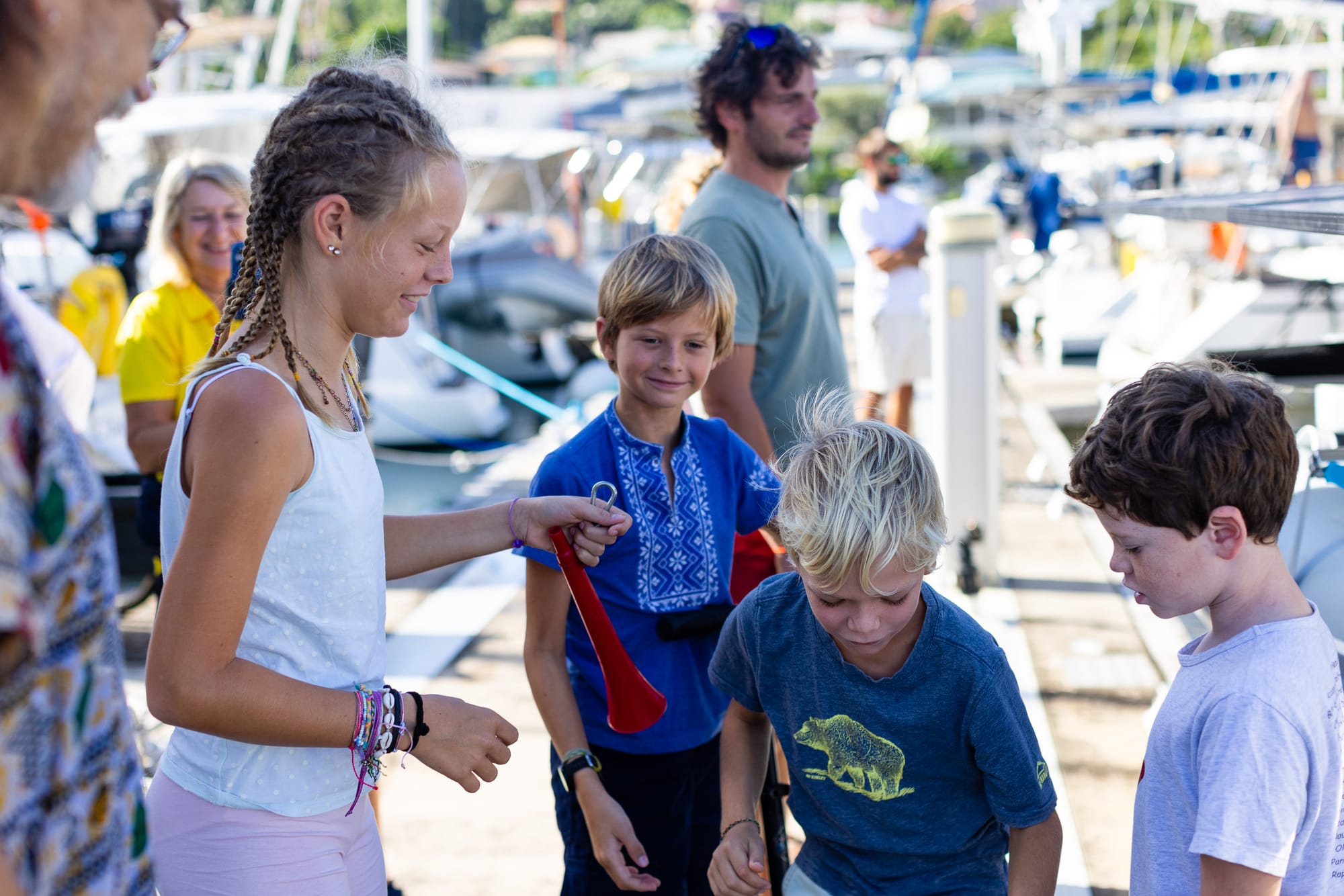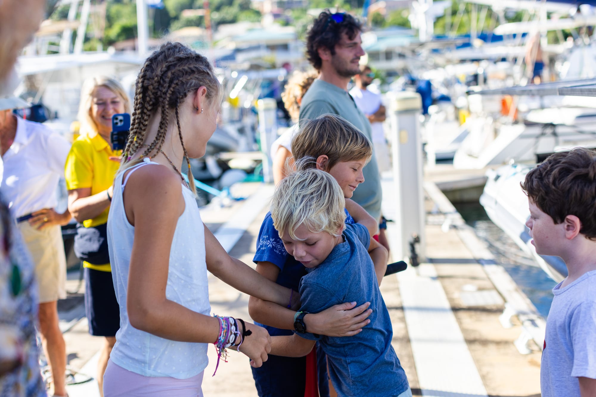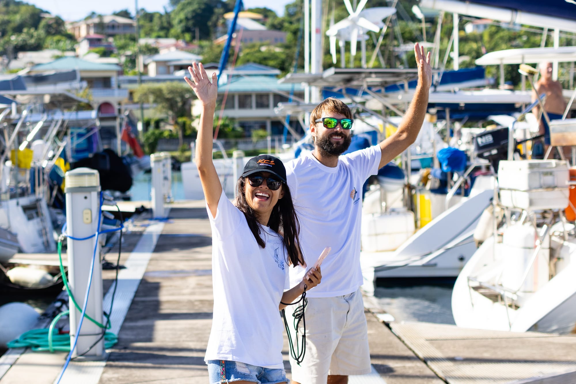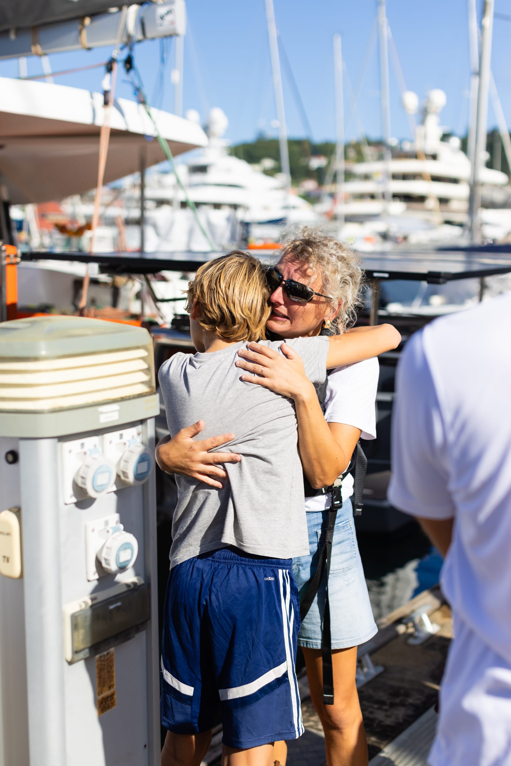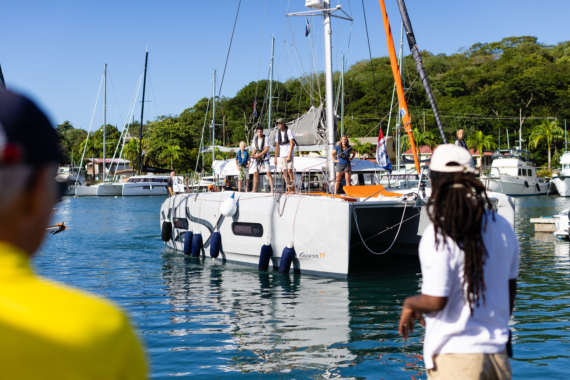A 8h45 !!!!! On prend la direction de la Marina, là on voit un bateau arriver à toute allure vers nous. Las de la nuit.... on se demande ce que cela peut encore bien être.... Et QUELLE JOIE de voir arriver Kalle du Bateau Lyfe avec sa fille nous accueillir et nous escorter au son de la corne de brume !!!