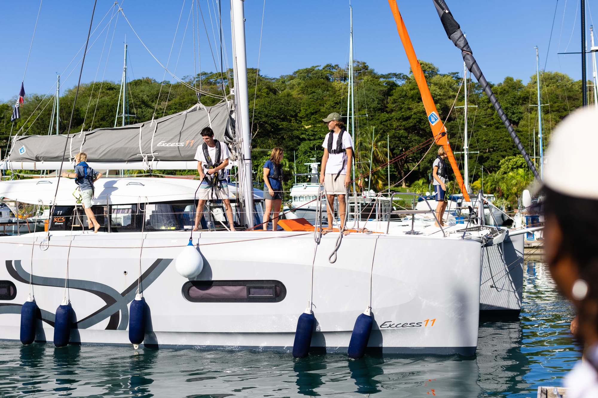Un bateau copain nous conseille de ne pas arriver de nuit a la Marina de Grenade, PASSAGE DE LA LIGNE D’ARRIVEE A 3 :30 du matin. Alors on fait des tours dans l'eau on se détourne d’une zone « Hurricane damage », on subit de nouveaux grains, on échange à la barre.