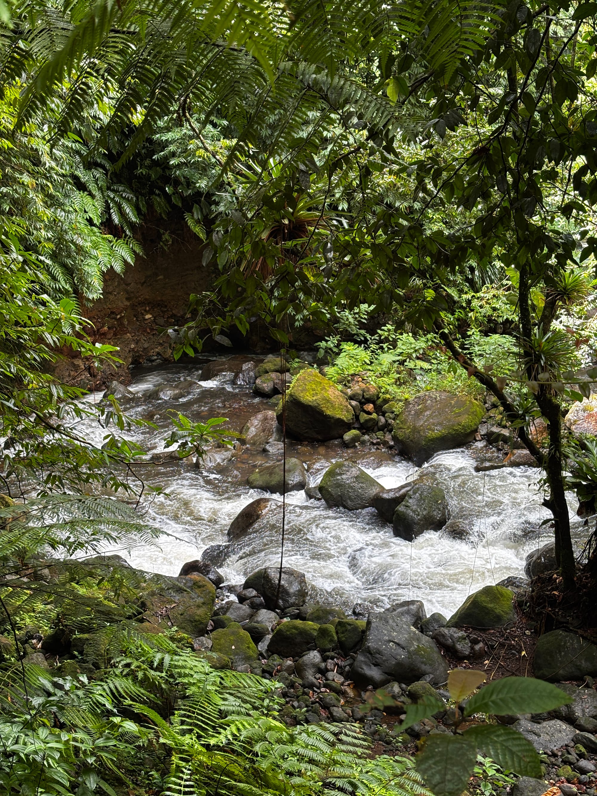 Le 9 mars nous retournons aux chutes du carbet, cette fois il fait très beau et comme nous avons les jambes un peu en compote de la veille nous faisons la chute la plus courte mais tout aussi jolie et voyons 2 belles cascades ! Leur chute fait environ 110 M c'est impressionnant ! Je prends plusieurs vidéos que je vais partager à tonton Andreas j'aimerais tellement qu'il voit et ressente ces rivières et ses cascades apaisantes.